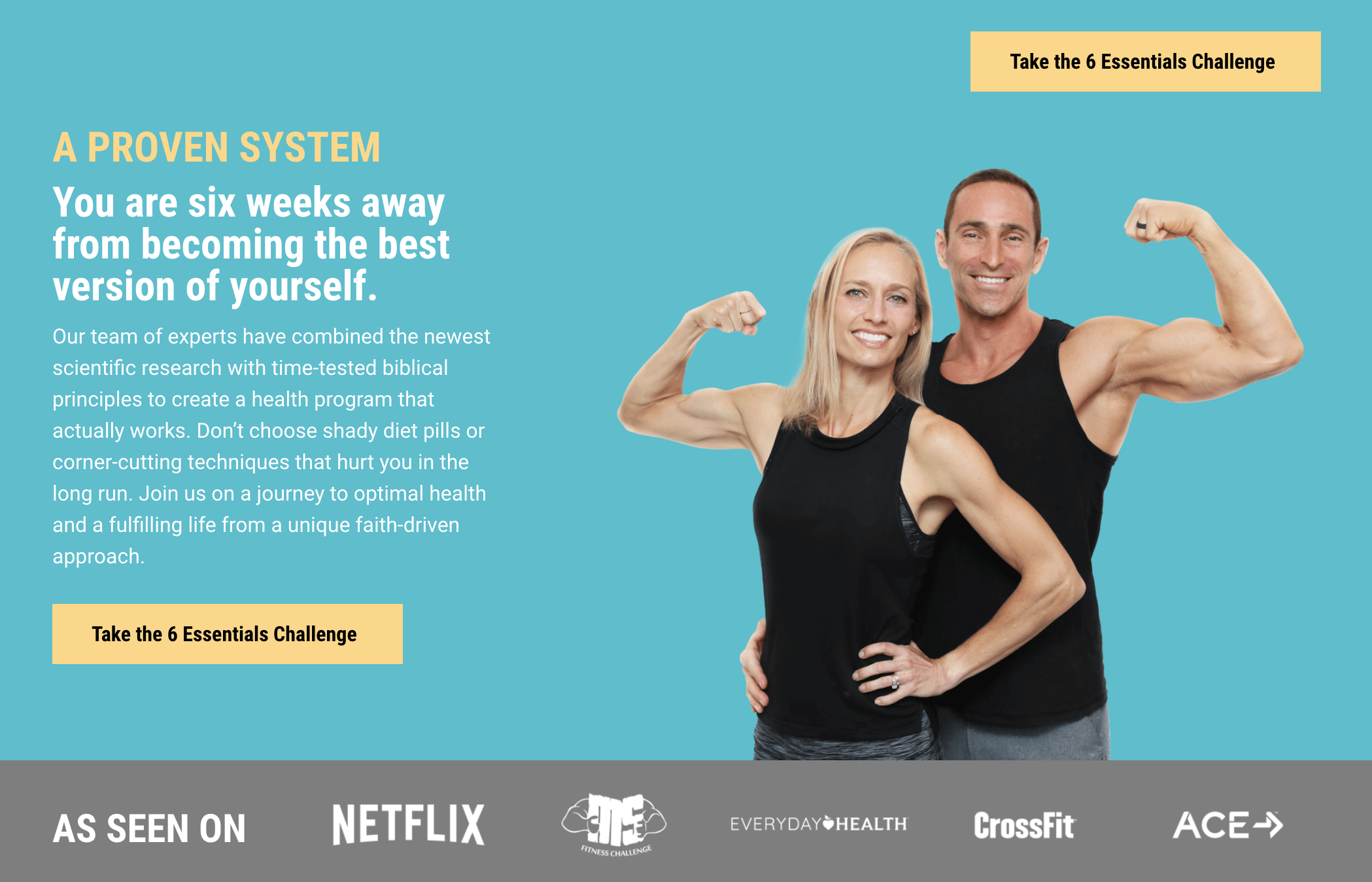 Our team of experts have combined the newest scientific research with time-tested biblical principals to create a health program that actually works! Join us on a journey to optimal health and a fulfilling life in Christ by taking the 6 Essentials Challange! Durring the 6 week challenge you will learn from a Scripture-backed program that delivers proven results, the intersection of faith and health how it can change your life for good, tips to gain energy & lose weight with simple nutrition, and so much more. Sign up at today at ::
